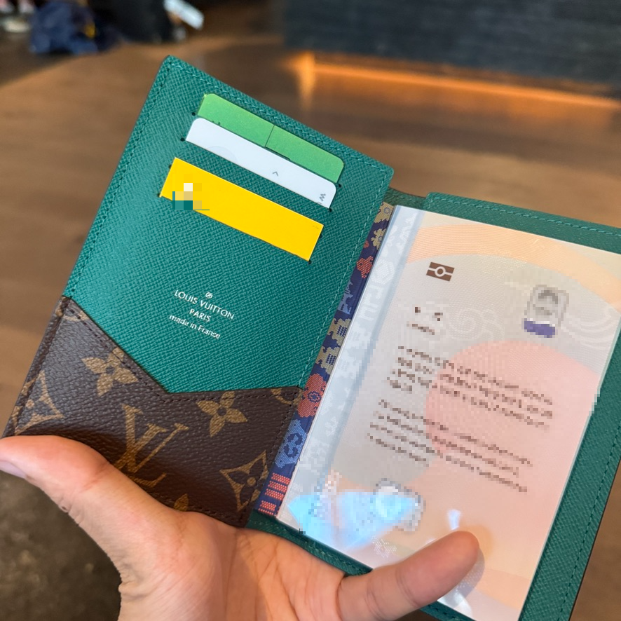 The colored leather lining added to the classic canvas monogram pattern gives the passport wallet a youthful yet luxurious feel. I love how elegant it looks when I take it out while traveling.