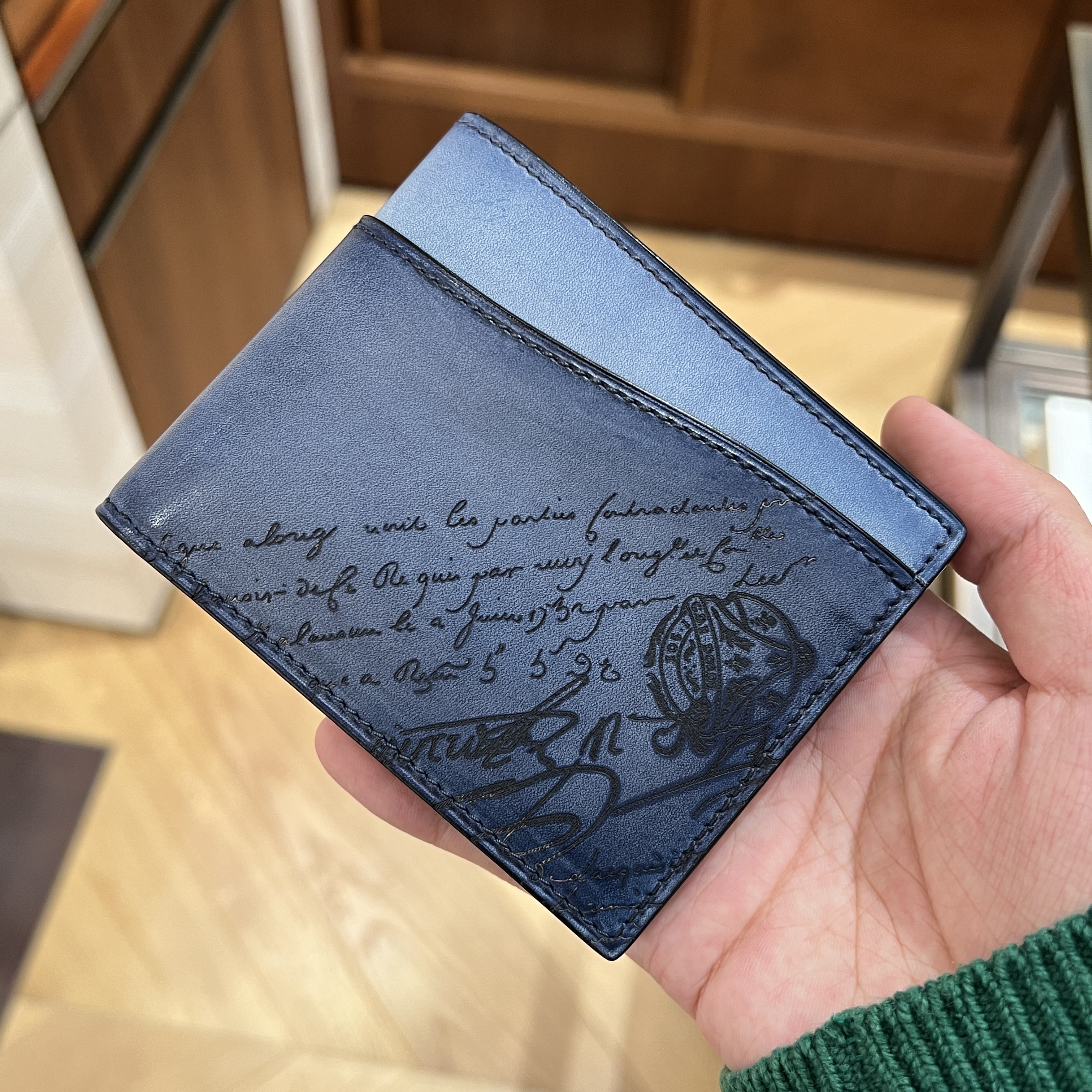 Compared to other wallet lines, it has a very young feel, but with the Berluti engraving and curved expression.