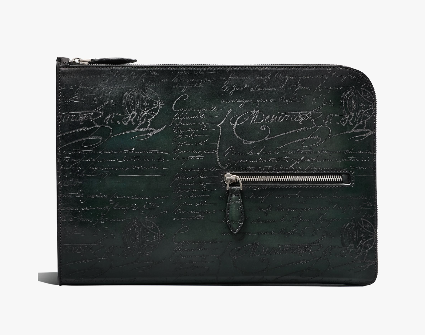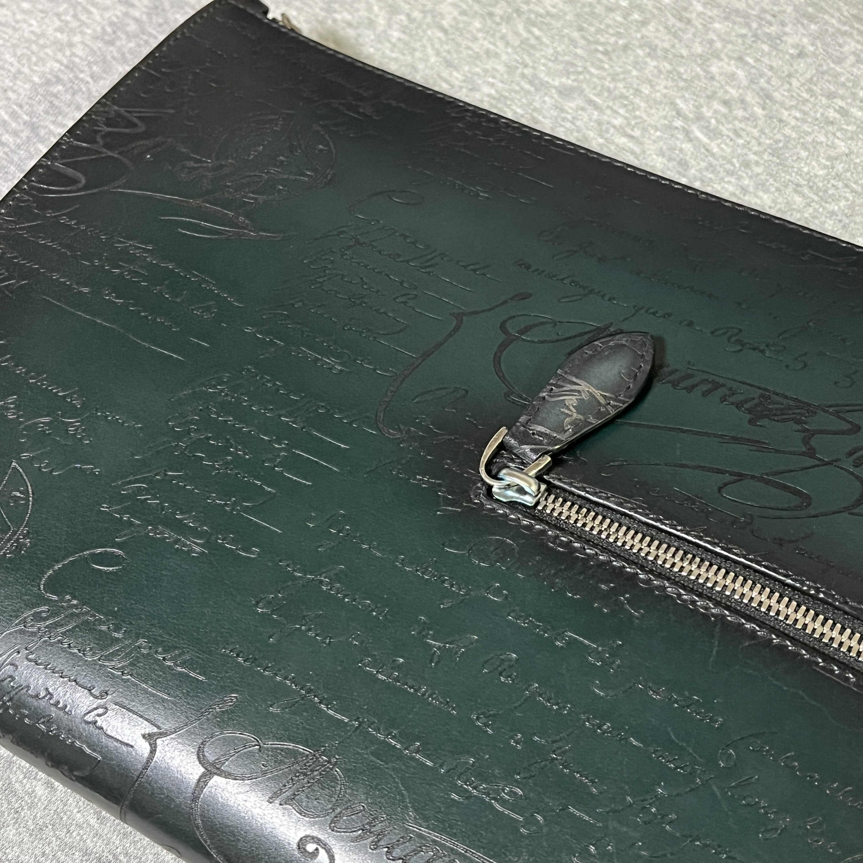 This clutch is filled with Berluti's signature Louis XIV's handwritten signature and engraving.